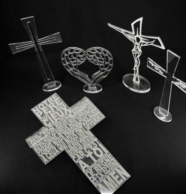 Gamme de croix – Découpe et personnalisation sur plastique effet miroir